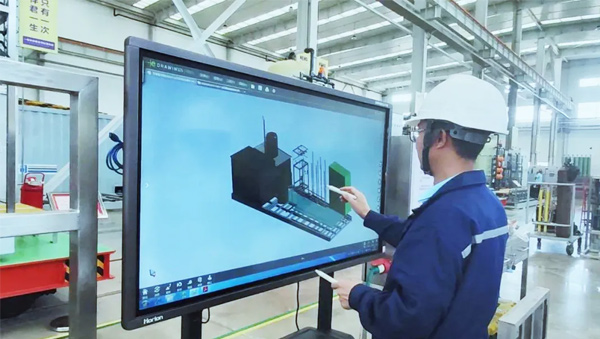 在這個裝配車間里,所有工人的動作都非常嫻熟,令人頗感意外的是,車間里竟然看不到一張圖紙。原來,這里的裝配工程師完全憑借電腦屏幕上顯示的三維模型來組裝設備。這是金正環保自主研發的設備智能組裝管理系統,創新打造無紙化、可視化、智能化的裝配場景和“搭積木”式裝配流程,操作簡單直觀,數據傳遞及時,溝通高效準確,有效提高了設備標準化組裝精度,大幅縮短了生產周期,實現技術、設計、生產、計劃等部門的協同管理。