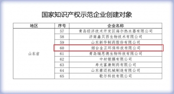 煙臺金正環保成功入選國家知識產權示范企業,獲國家級最高認可